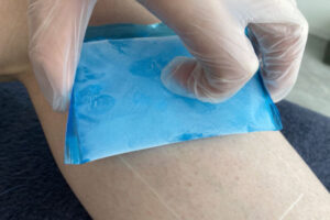 アゴ裏は皮膚が薄く脱毛後はデリケートな状態になっていますので、お肌の状態を確認したのち十分な冷却を行います。冷却・鎮静後は専用のローションにてお肌の乾燥予防を行います。